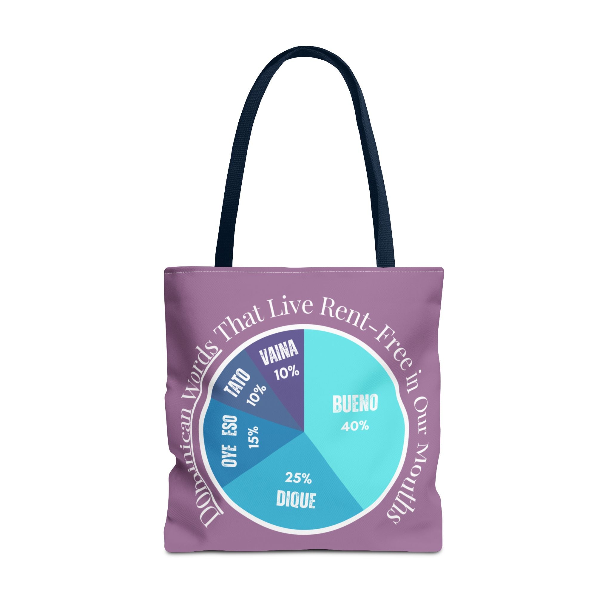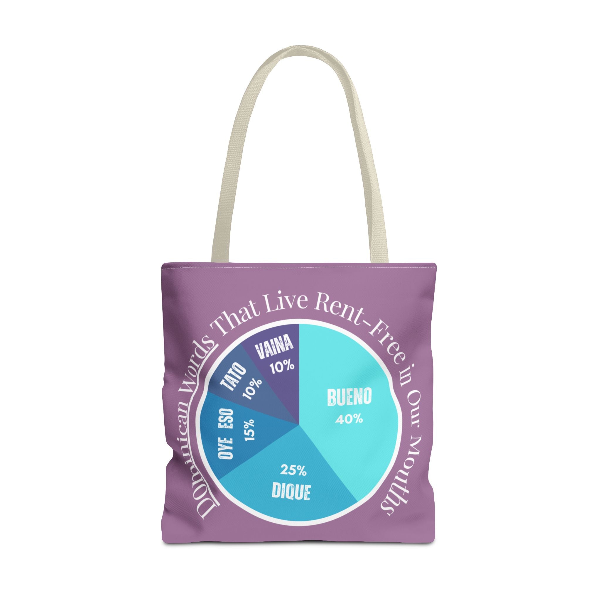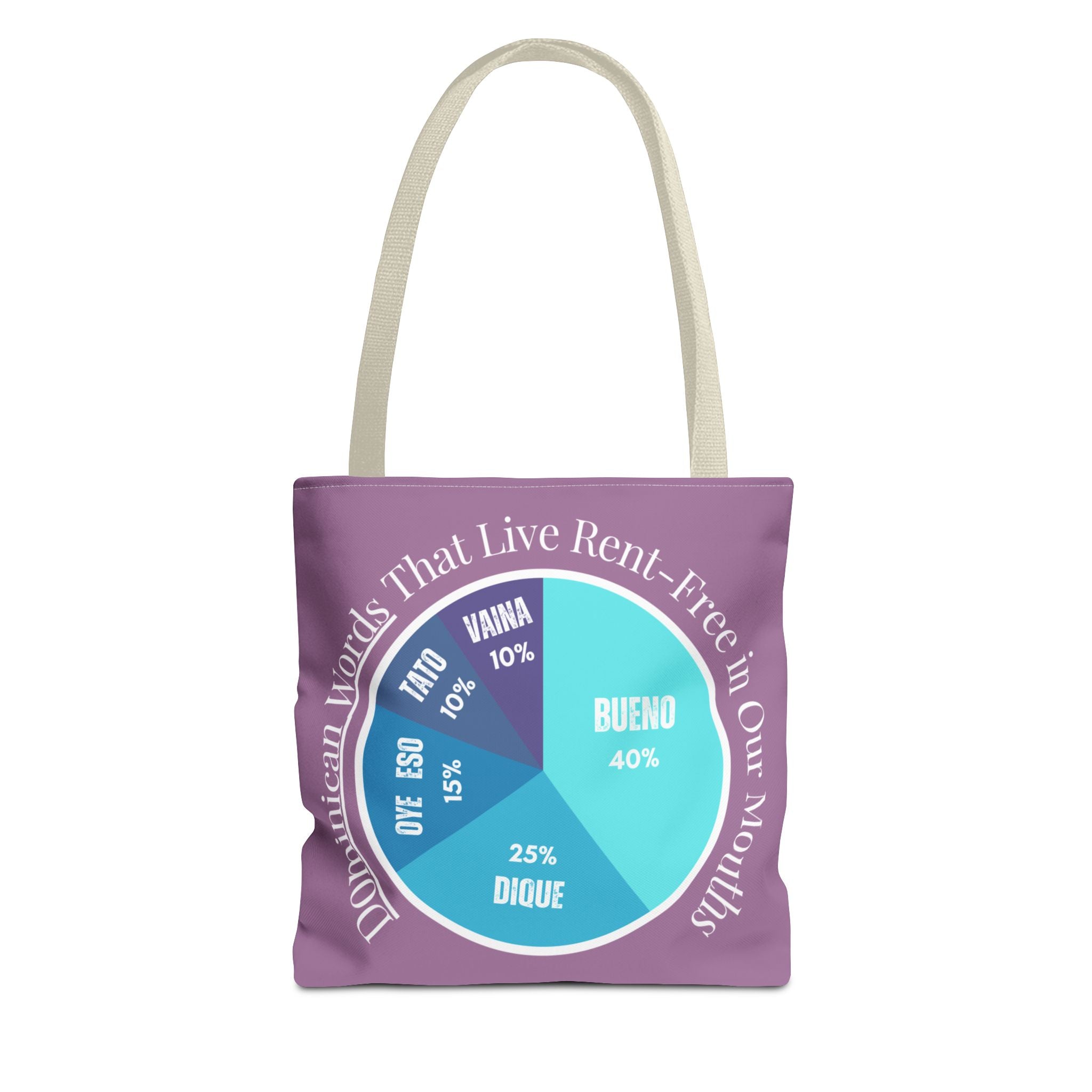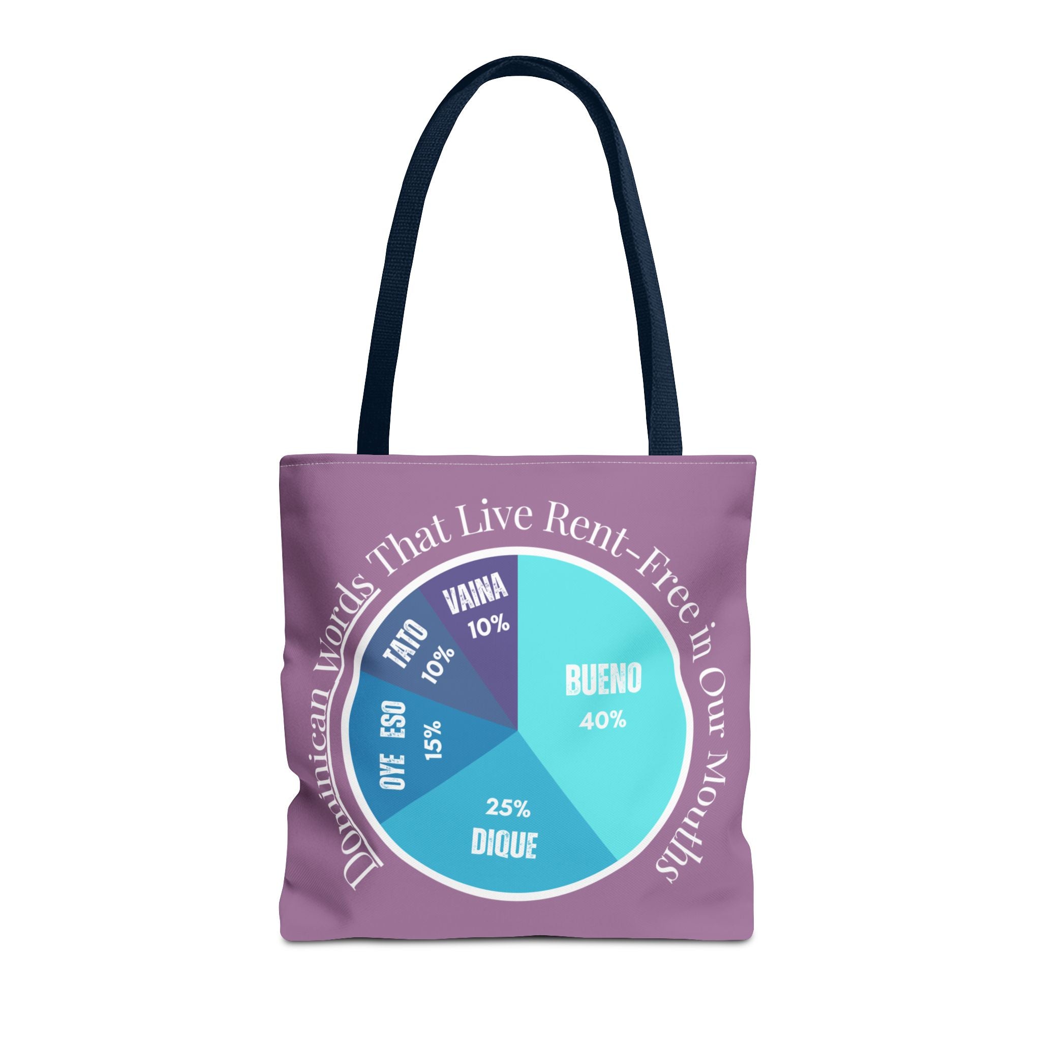 Show off your Dominican pride y tu vocabulario with this playful pie chart tote featuring the top five most-used Dominican words — Bueno, Dique, Oye eso, Vaina, and Ta’ to’. Perfect for errands,...
