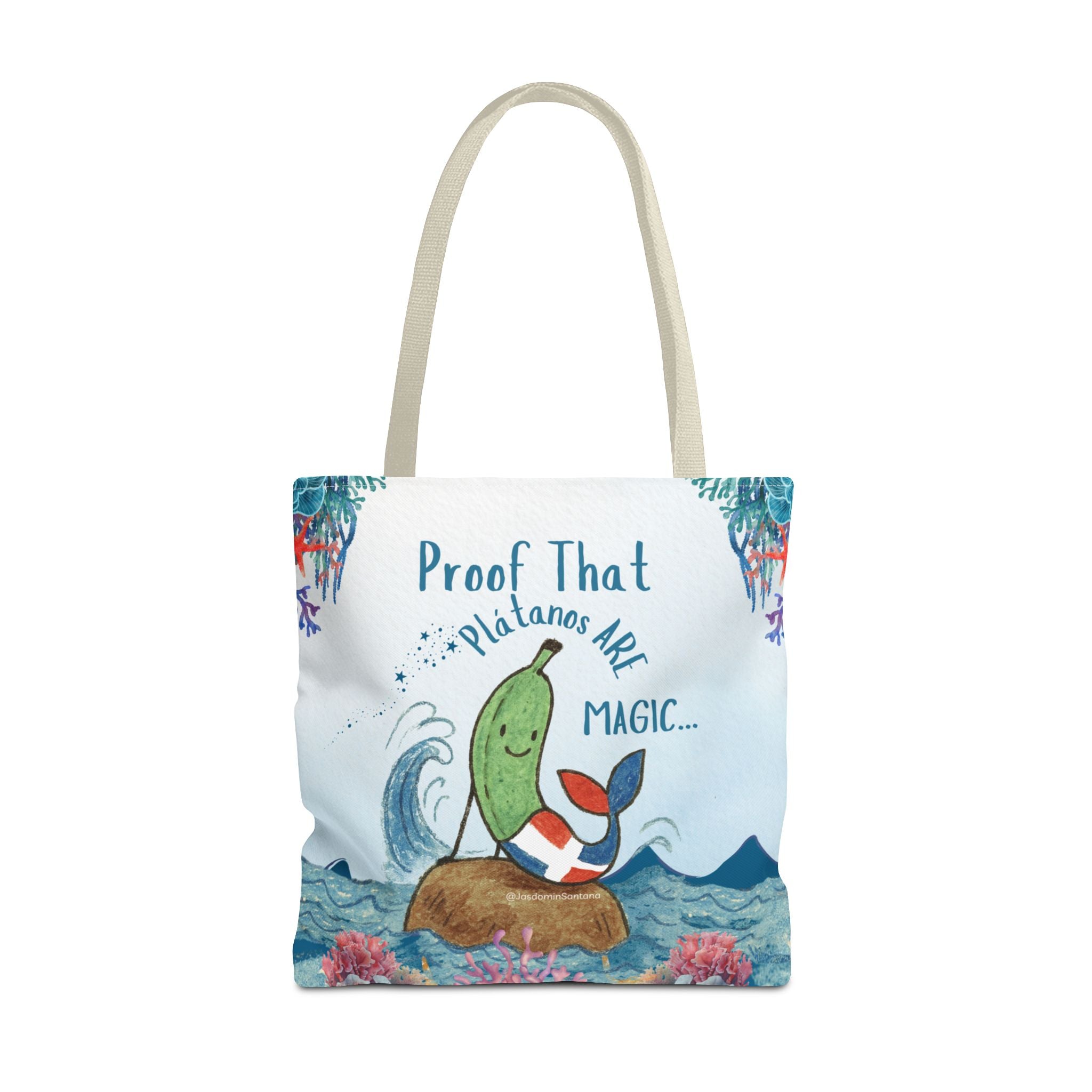 Brighten your day and your outfit with our "Platanos Mermaid" tote. Featuring a mermaid Platano. Product features 100% polyester body for durability and quick-drying Reinforced stitching...