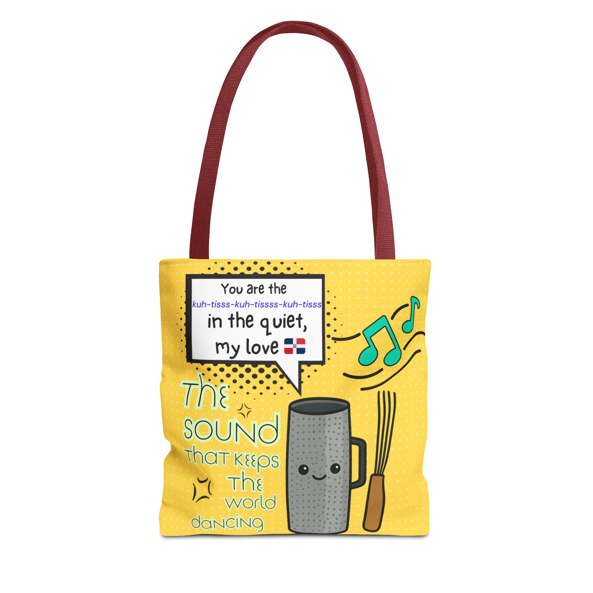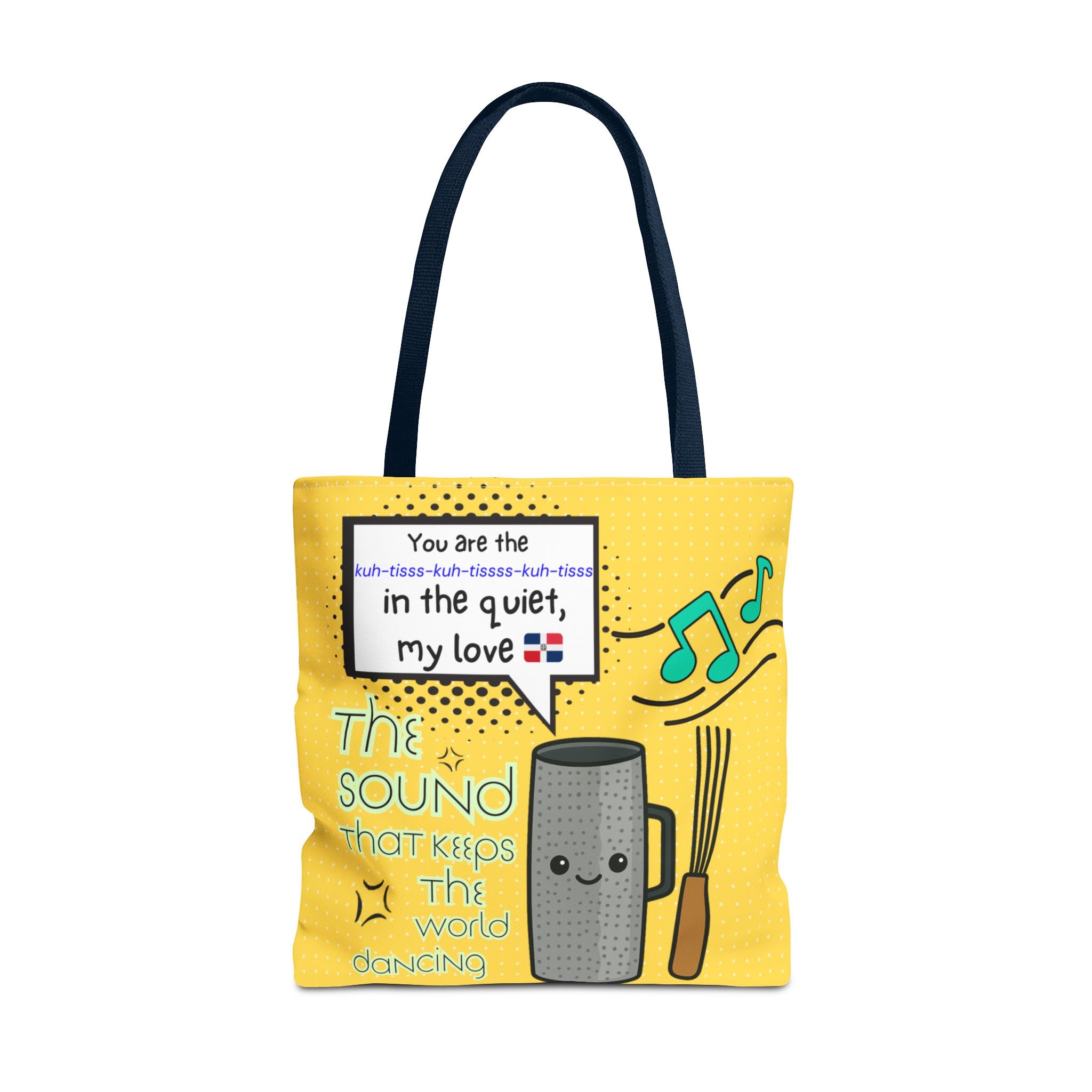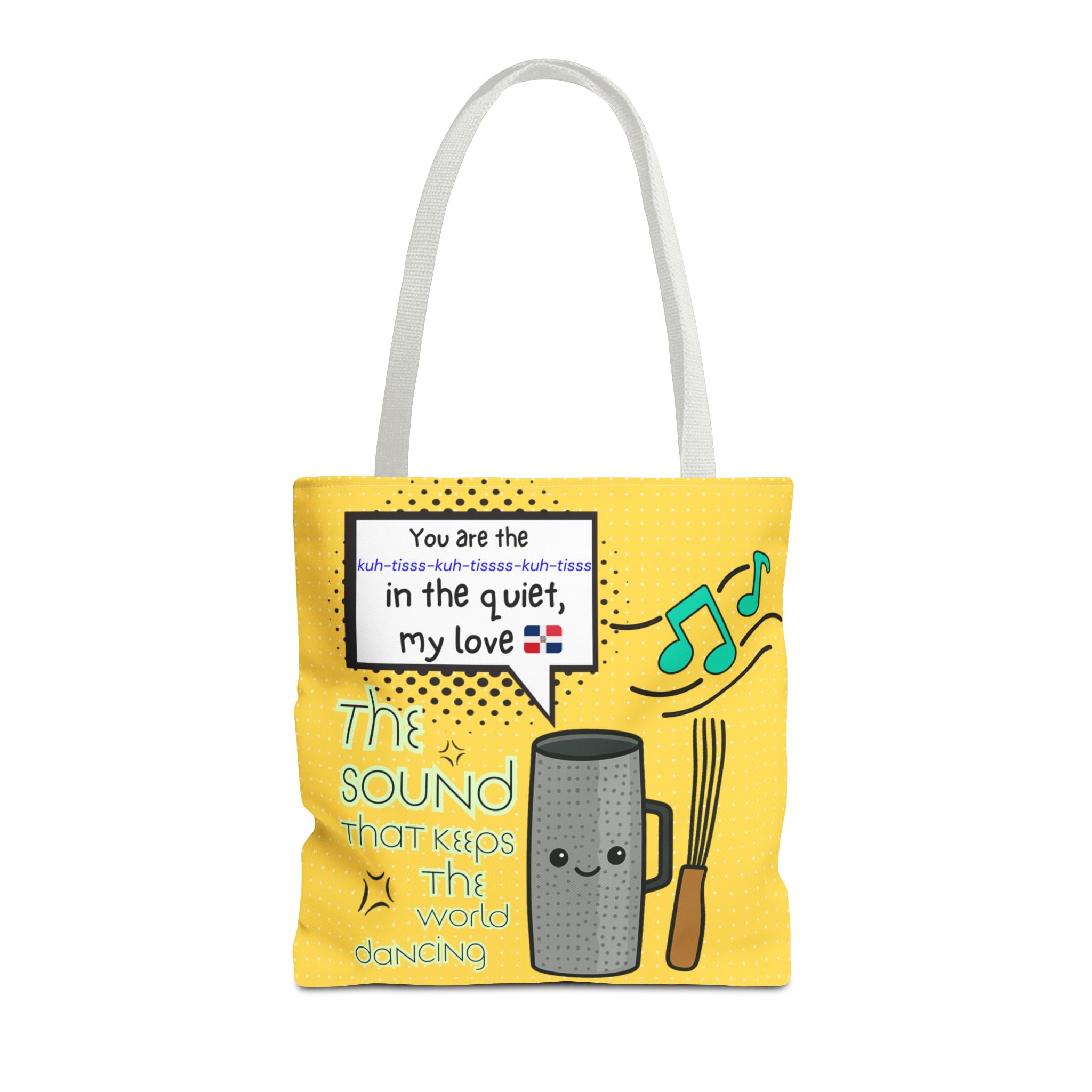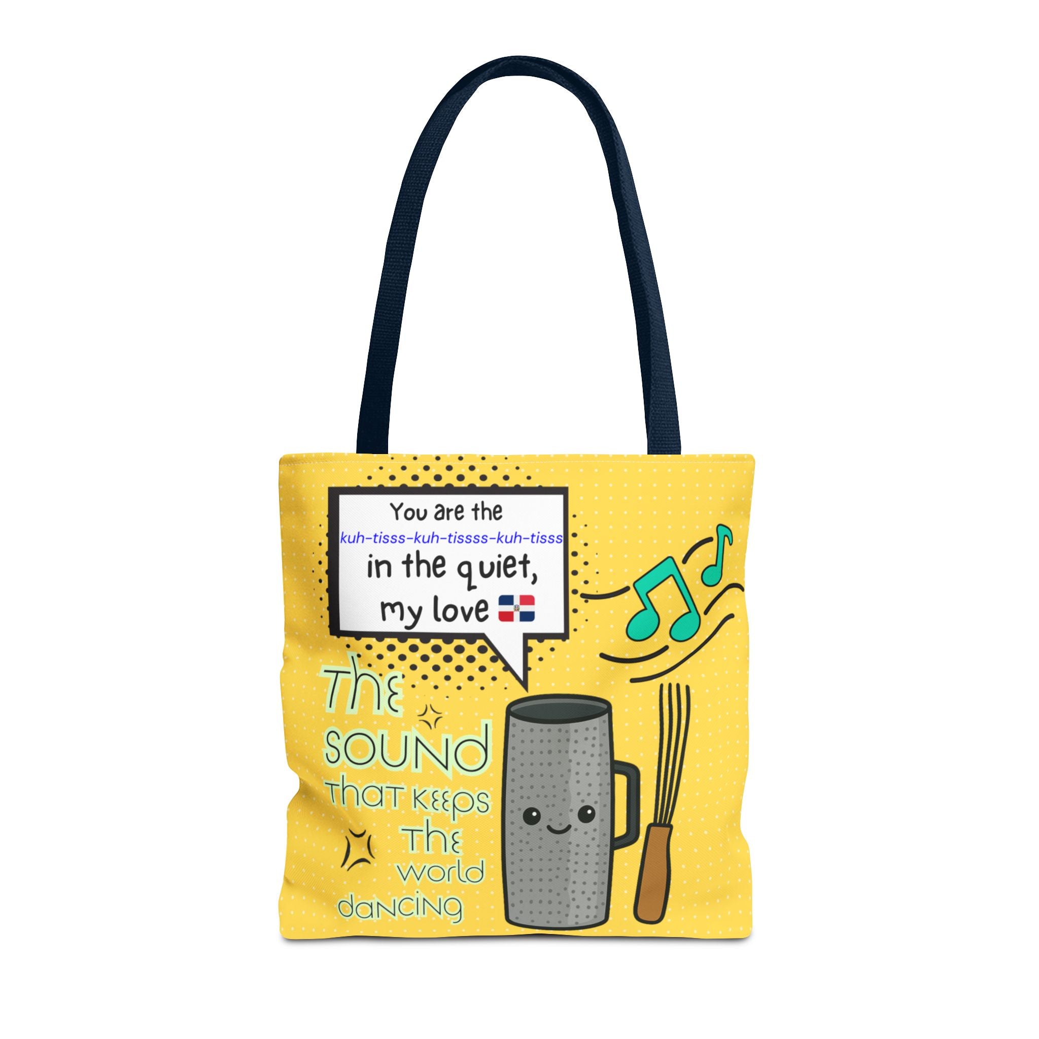 Celebrate the heartbeat of Dominican music with our "The Sound That Makes the World Move / El Sonido Que Mueve el Mundo" tote. Featuring a bold güira illustration...