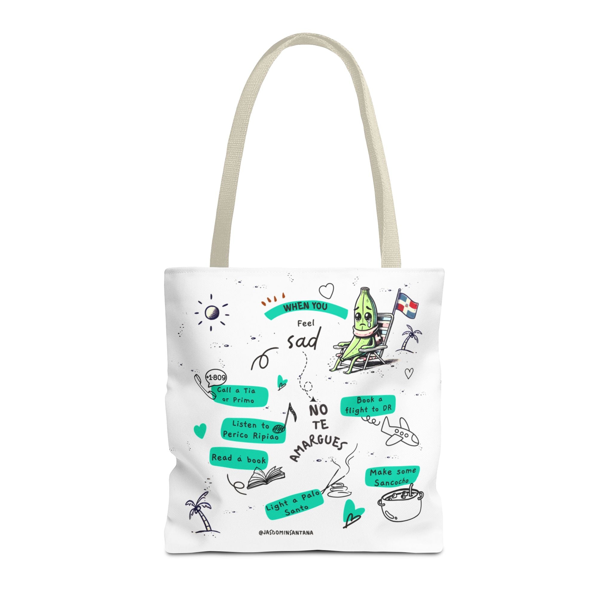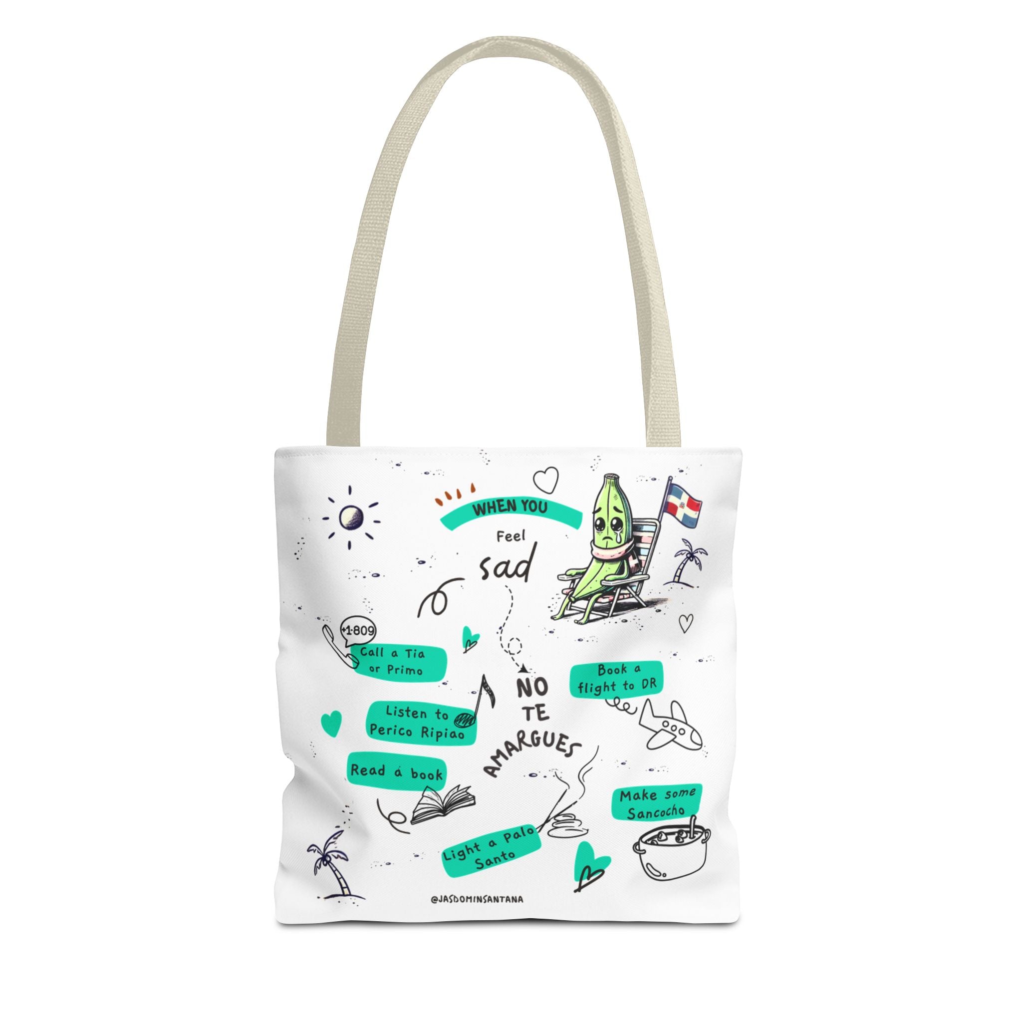 "when you feel sad, no te amargues" – dominican mood-lifter tote bag