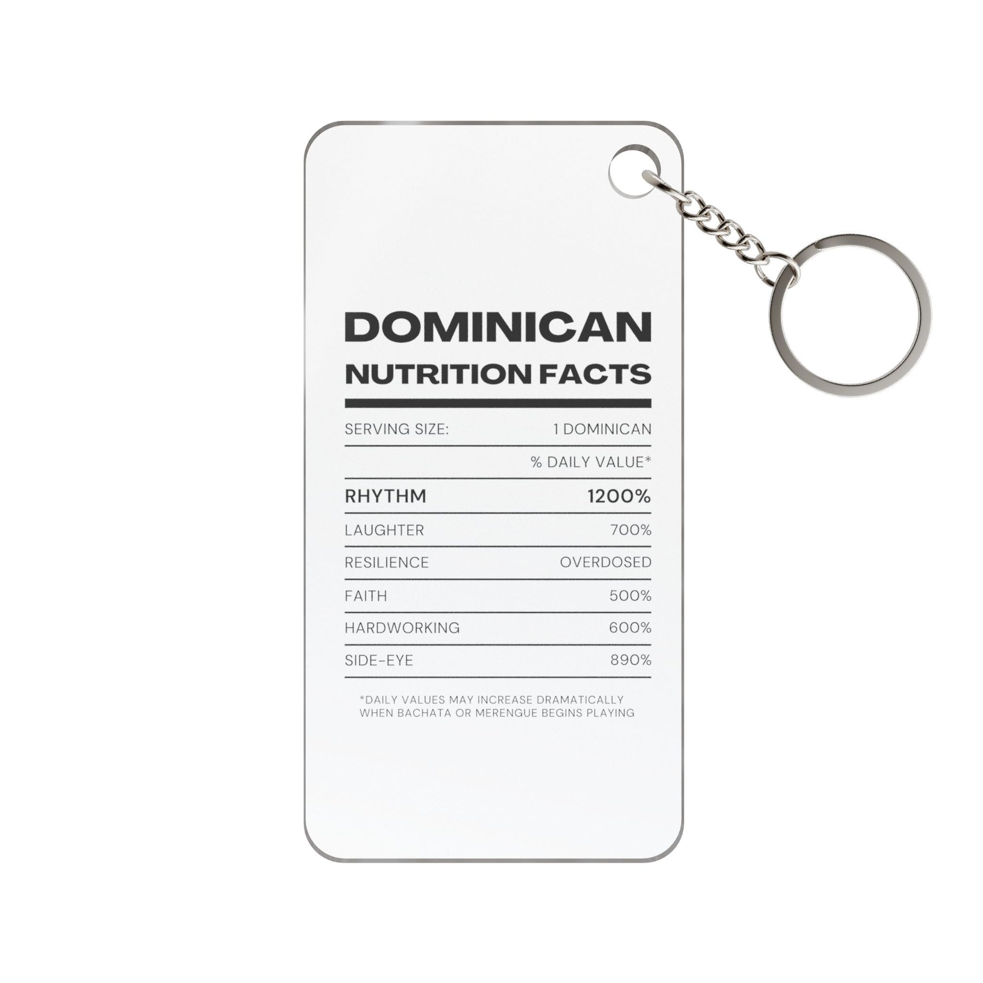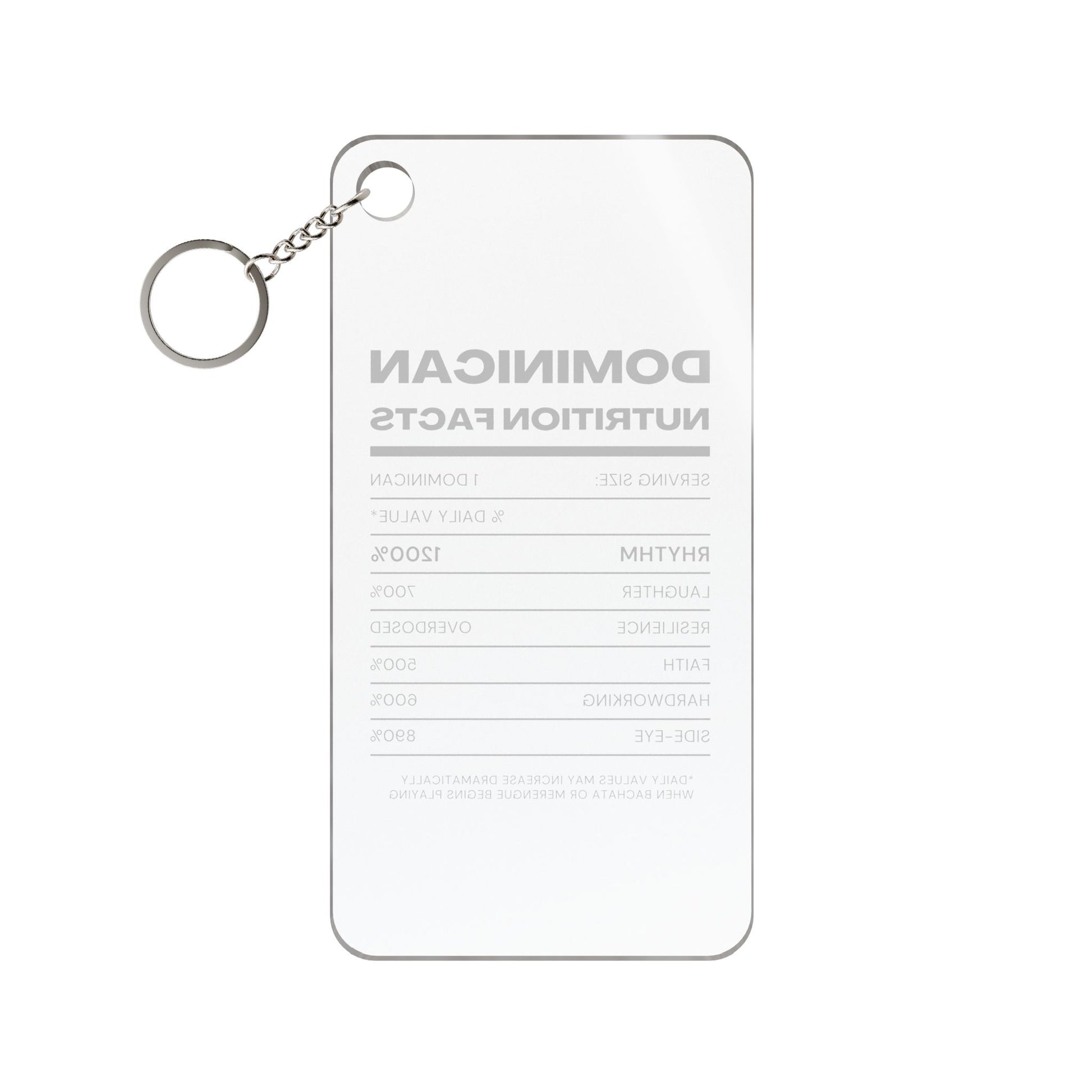 Dominican nutrition facts keychain charm — inspirational heritage gift